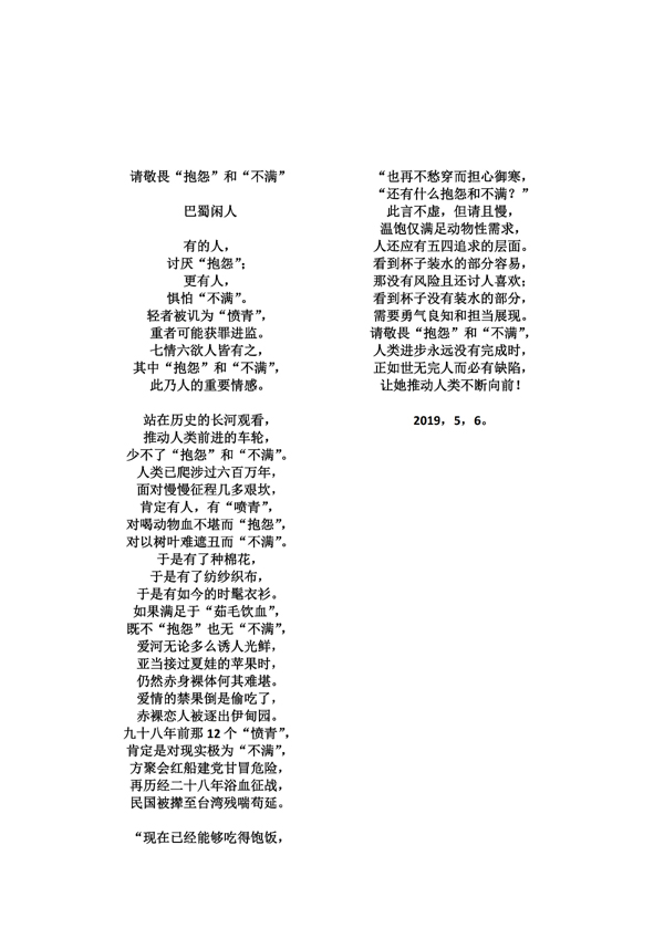 请敬畏“抱怨”和“不满”