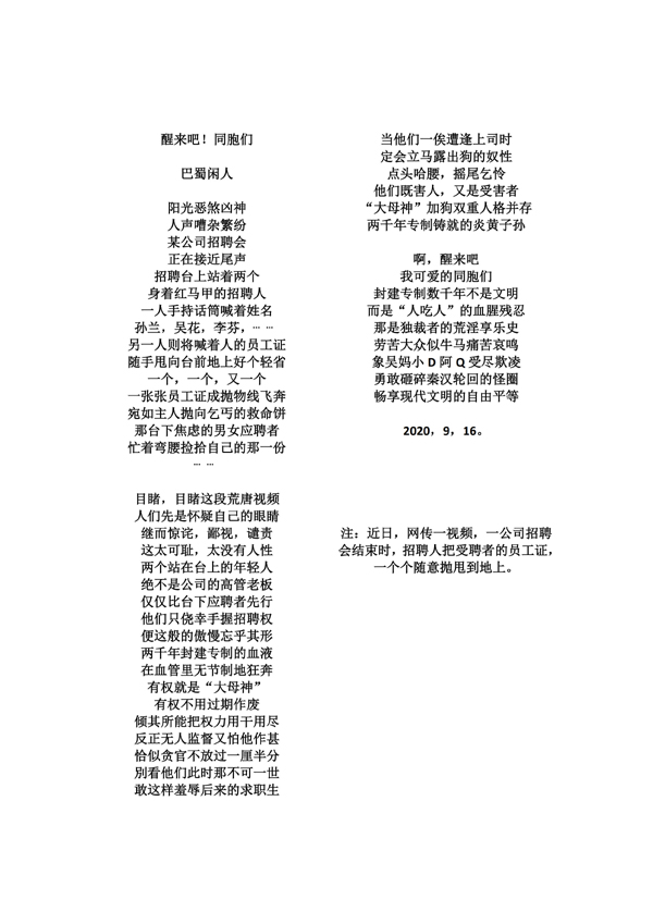 同胞们!醒来吧