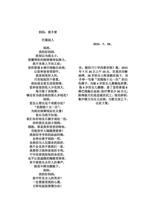 妈妈,我不要